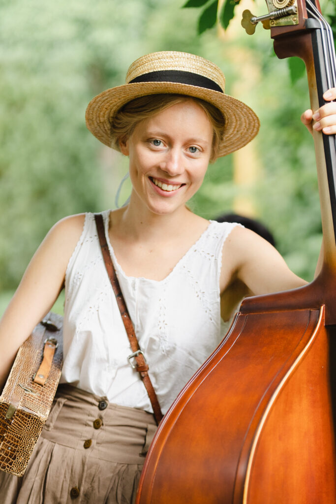 Leoni, mit Geige/Akkordeon und besonders trickreichen Zweitstimmen dominiert sie den Diskant